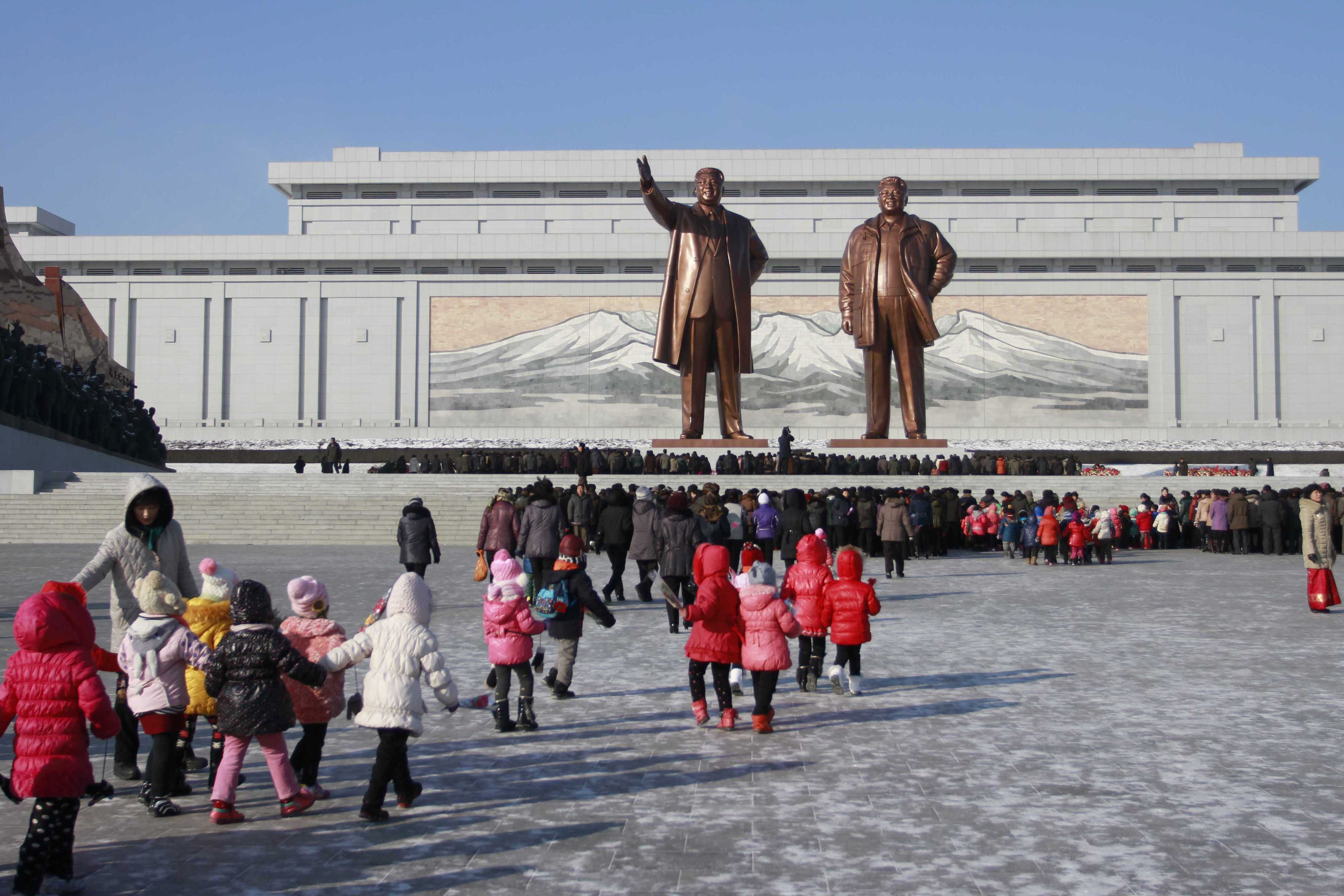 Late leaders Kim Il Sung and Kim Jong Il tower over Mansu Hill in North Korea.http://www.post-gazette.com/opinion/2015/01/07/Dan-Simpson-Throw-out-a-line-to-North-Korea/stories/201501070032